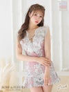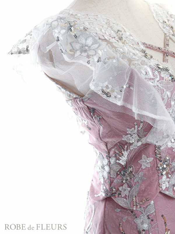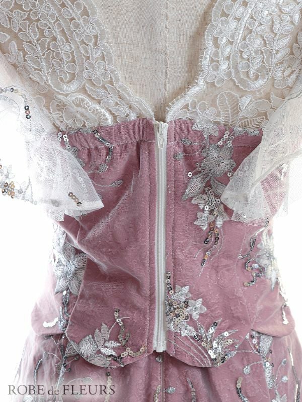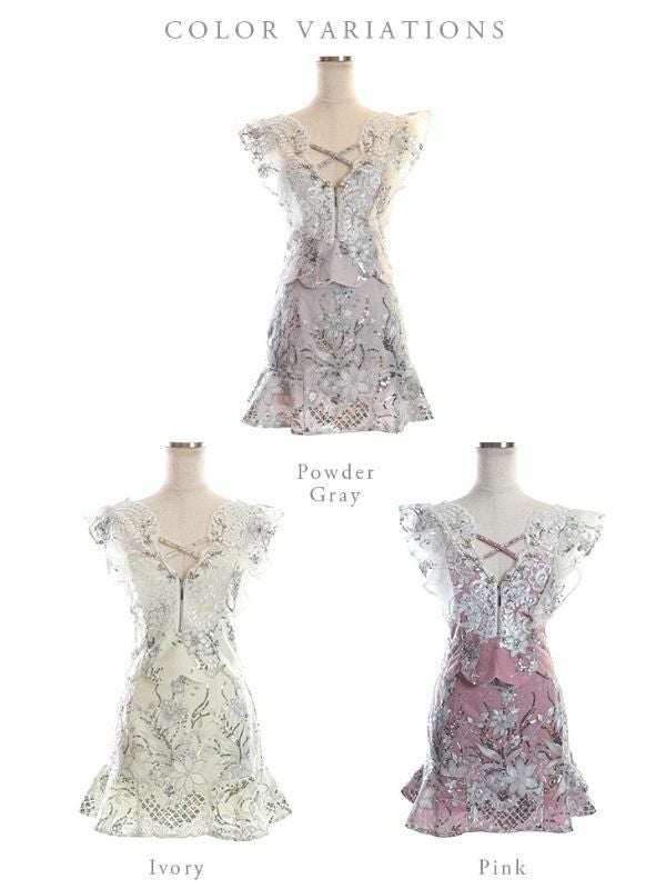 胸元のビジュー×レースが目を惹く☆ [ROBEdeFLEURS/ローブドフルール] 高級フロントクロスフラワーレースフリル袖セットアップドレス