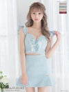 4. [ROBEdeFLEURS/ローブドフルール] 高級フリル袖ツイードビジュー胸元フリルジップノースリーブセットアップタイトミニドレス