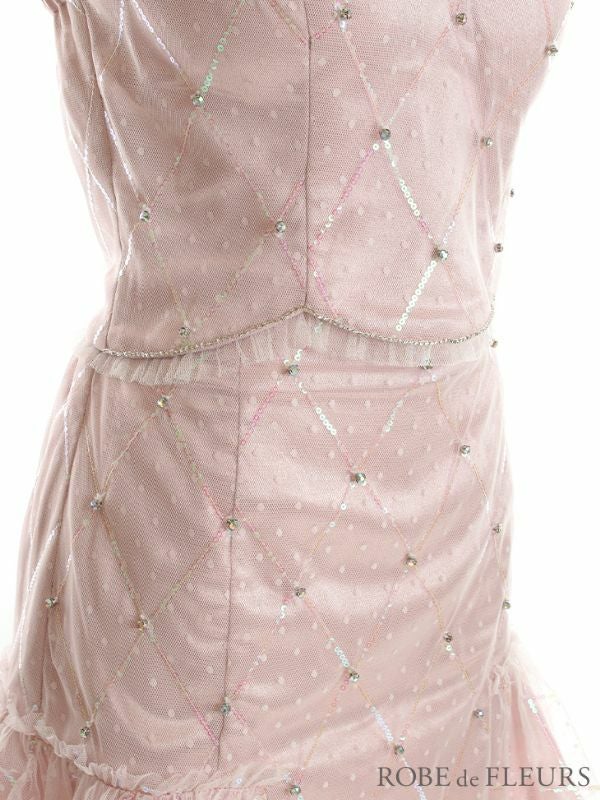 4. SALE [ROBEdeFLEURS/ローブドフルール] 高級レーススパンコールドット柄チュールフリルビジューワンカラーセットアップキャミソールフレアミニドレス