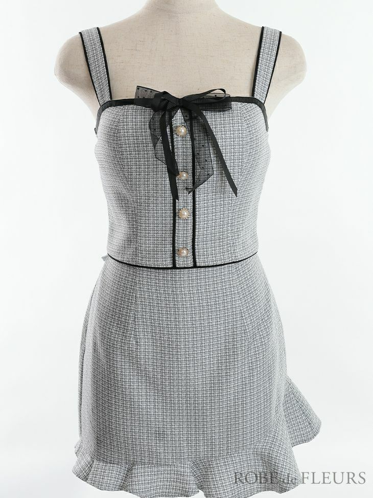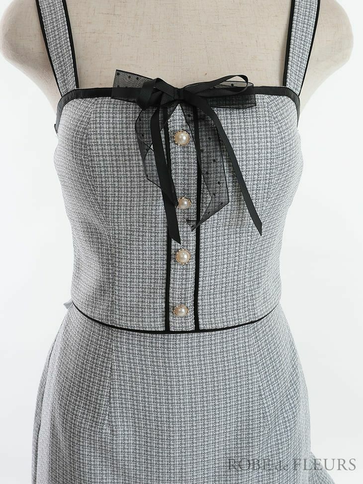 5. [ROBEdeFLEURS/ローブドフルール] 高級ツイードマーメイドリボンセットアップキャミソールタイトミニドレス
