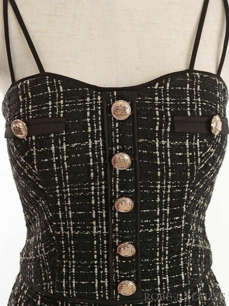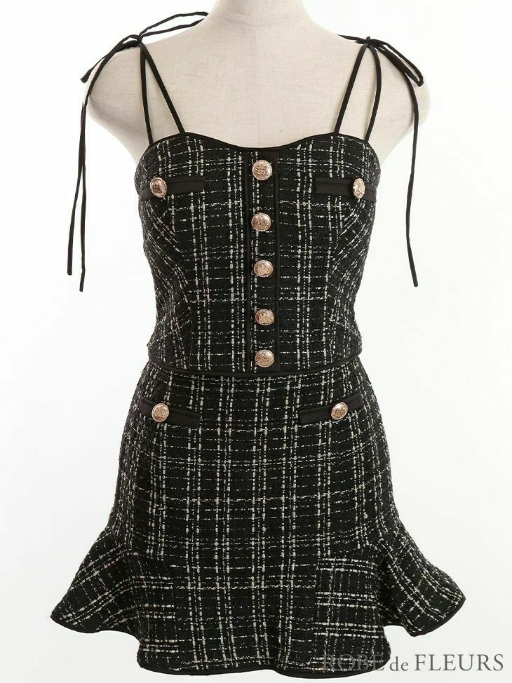 別々でも着用できる! [ROBEdeFLEURS/ローブドフルール] 高級ツイードリボンセットアップマーメイドキャミソールタイトミニドレス