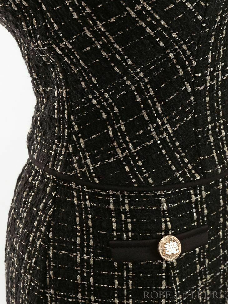 4. [ROBEdeFLEURS/ローブドフルール] 高級ツイードリボンセットアップマーメイドキャミソールタイトミニドレス