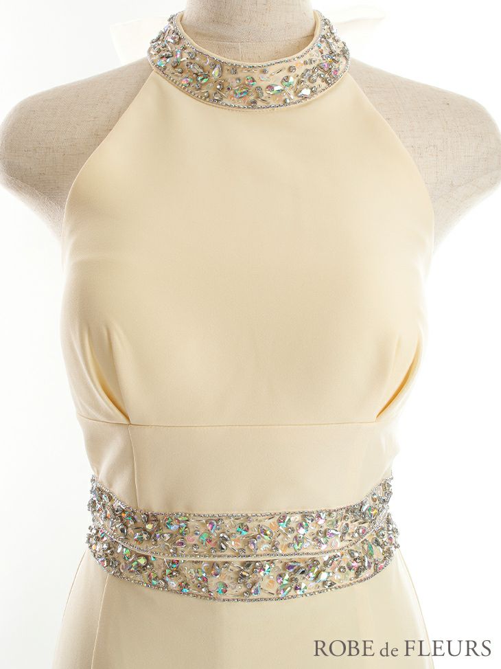 4. [ROBEdeFLEURS/ローブドフルール] 高級セットアップバックリボンビジューワンカラーノースリーブタイトミニドレス