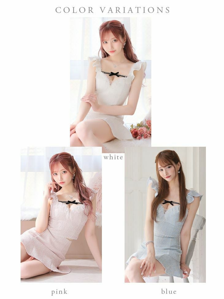 5. SALE [ROBEdeFLEURS/ローブドフルール] 高級バストリボンパールフリルセットアップノースリーブタイトミニドレス