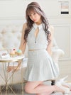 キャバドレス ミニドレス ROBEdeFLEURS ローブドフルール 高級襟付きバストジップノースリーブラメツイードセットアッププリーツフレアミニドレス