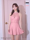 程良い肌魅せがキュート☆ [ROBEdeFLEURS/ローブドフルール] 高級 ホルターネック セットアップ ツイード スパンコール バストシースルー 谷間魅せ フレアミニドレス