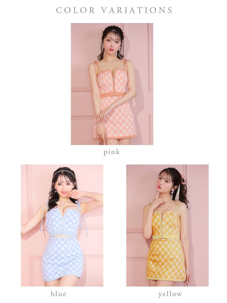 可愛いを詰め込んだ1着☆ SUPER SALE [ROBEdeFLEURS/ローブドフルール] 高級チェック柄ショルダーリボンキャミソールジップセットアップフレアミニドレス