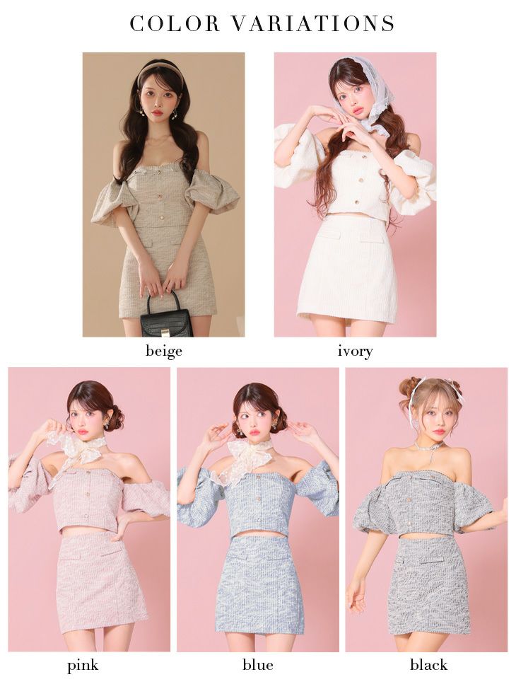 5. [ROBEdeFLEURS/ローブドフルール] 高級オフショルダーパフスリーブニットツイードセットアップタイトミニドレス (ゆんころ着用)