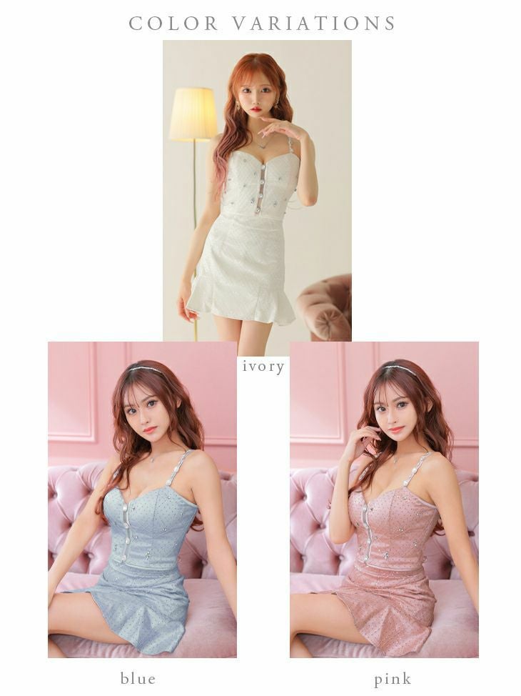 ガーリーなセットアップミニドレス! [ROBEdeFLEURS/ローブドフルール] 高級ドット柄ビジューキャミソールセットアップフレアミニドレス