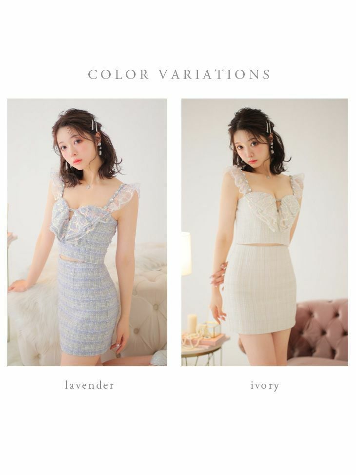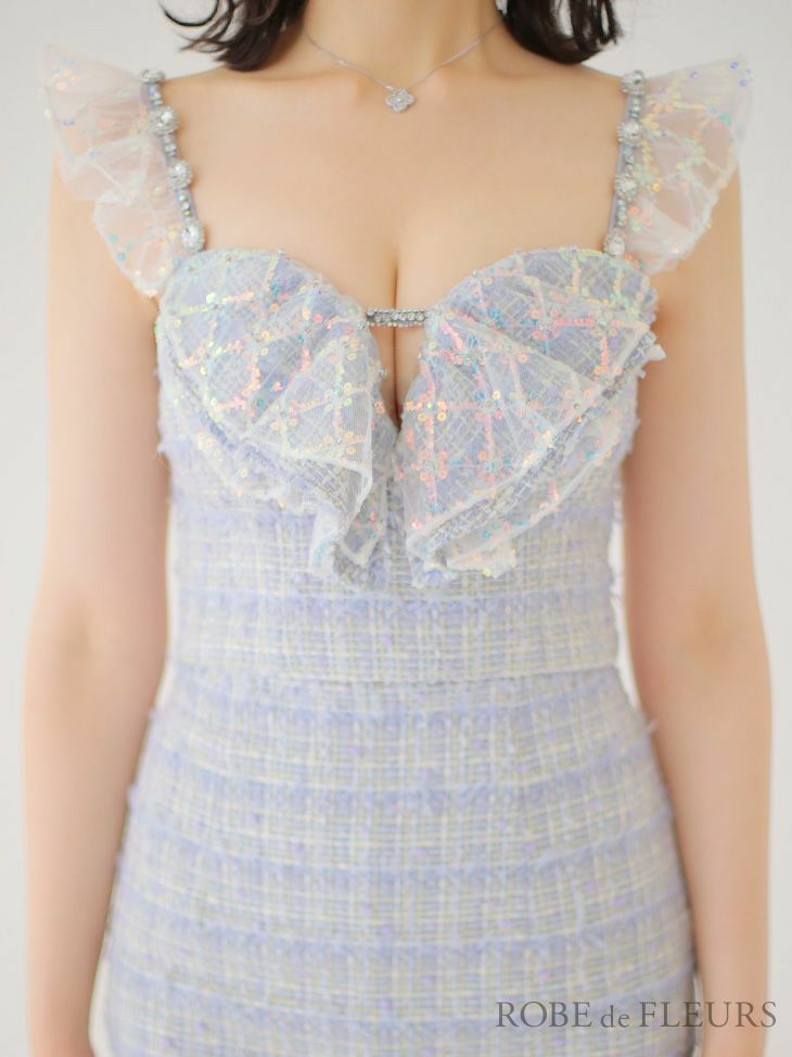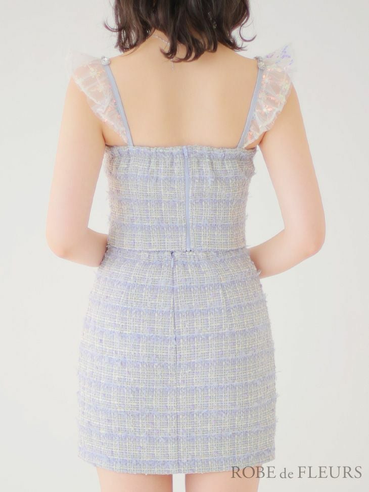 トップスとスカート別々でも着ていただけます◎ [ROBEdeFLEURS/ローブドフルール] 高級ラメツイードキャミソールスパンコールフリルセットアップタイトミニドレス