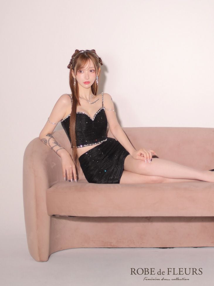 キャバドレス ミニドレス ROBEdeFLEURS ローブドフルール 高級セットアップキャミソールラメニットビジュータイトミニドレス