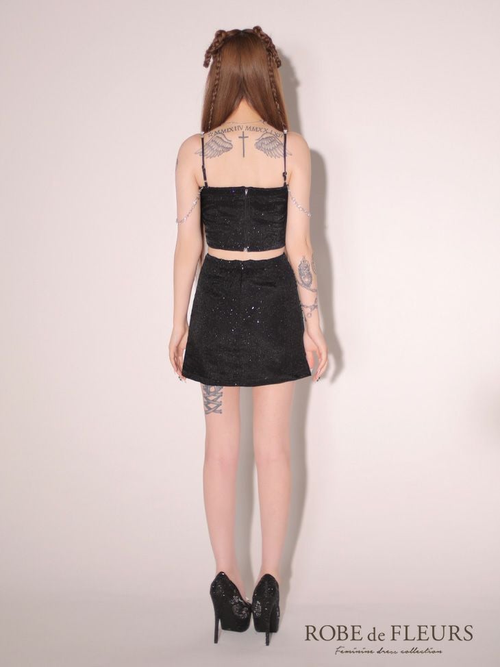 5. [ROBEdeFLEURS/ローブドフルール] 高級セットアップキャミソールラメニットビジュータイトミニドレス