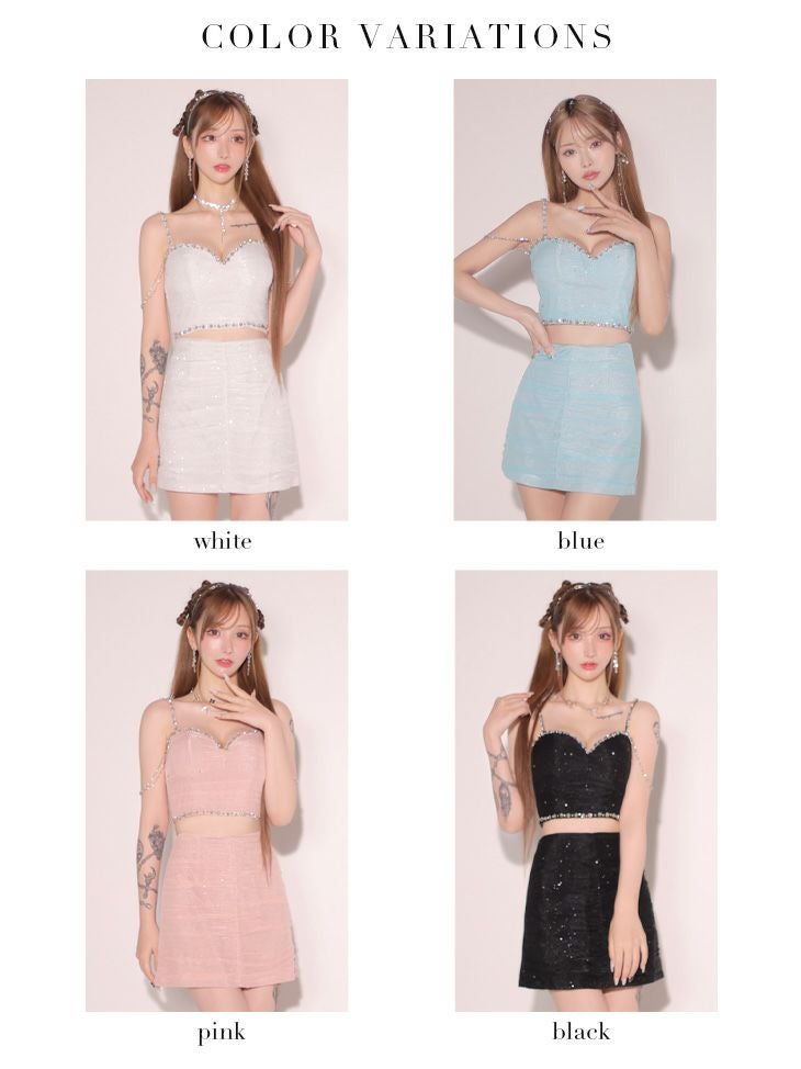程良い肌魅せがsexy☆ [ROBEdeFLEURS/ローブドフルール] 高級セットアップキャミソールラメニットビジュータイトミニドレス