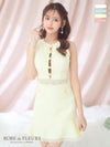 キャバドレス ミニドレス [ROBEdeFLEURS/ローブドフルール] 高級ノースリーブボタンデザインセットアップスカラップレースフレアミニドレス
