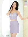 キラキラ可愛く目立てる♪ [ROBEdeFLEURS/ローブドフルール] 高級キラキラビジューバストジップリボンツイードキャミソールセットアップタイトミニドレス (一条響着用)