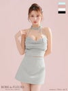 シンプルながらも可愛さ溢れる♡ [ROBEdeFLEURS/ローブドフルール] 高級 ブランド タイトミニドレス セットアップ ホルターネック ビジュー リボン ラメニット