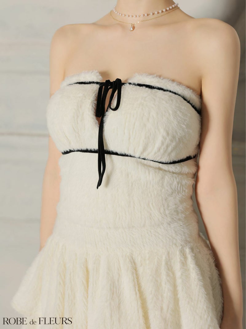 可愛いを詰め込んだ1着♡ [ROBEdeFLEURS/ローブドフルール] 高級 ブランド Aラインミニドレス 谷間 セットアップ 胸元リボン ベアデザイン シャギーニット フリル ティアード