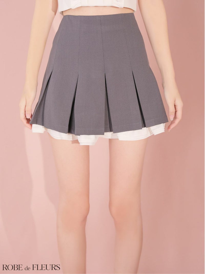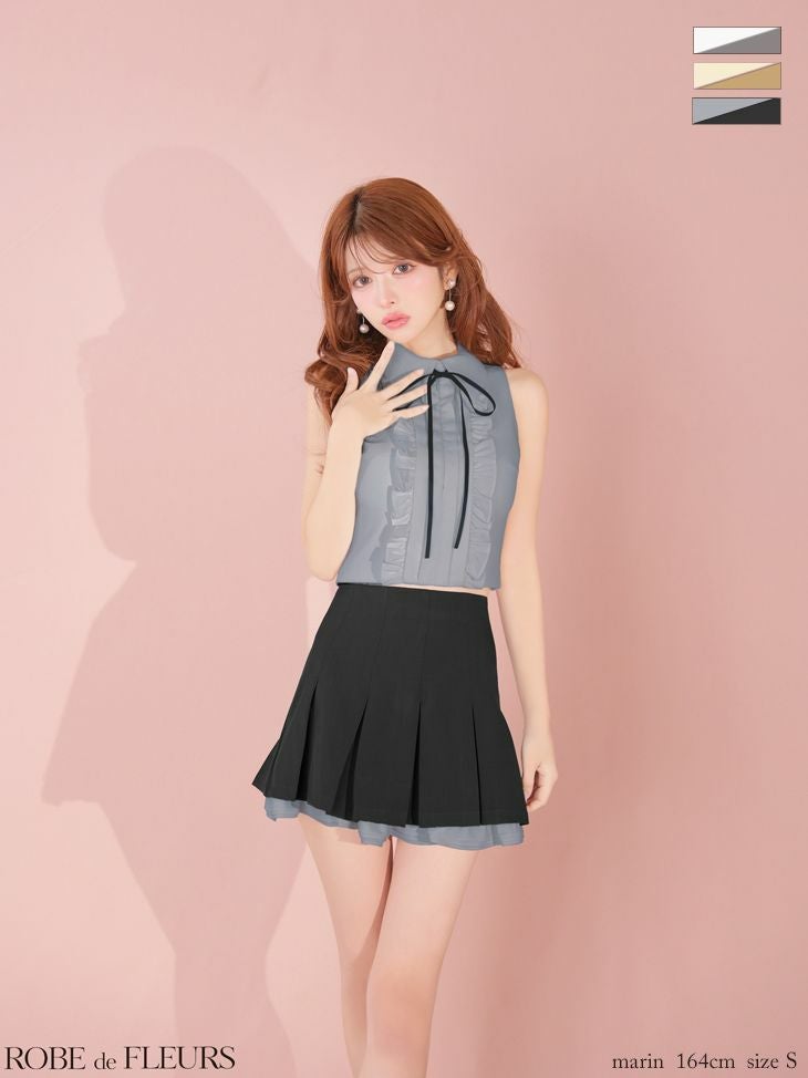 上品な可愛さ溢れる1着♡ [ROBEdeFLEURS/ローブドフルール] 高級 ブランド Aラインミニドレス セットアップ 胸元カバー ノースリーブ ネックリボン 襟付き プリーツ 裾フリル