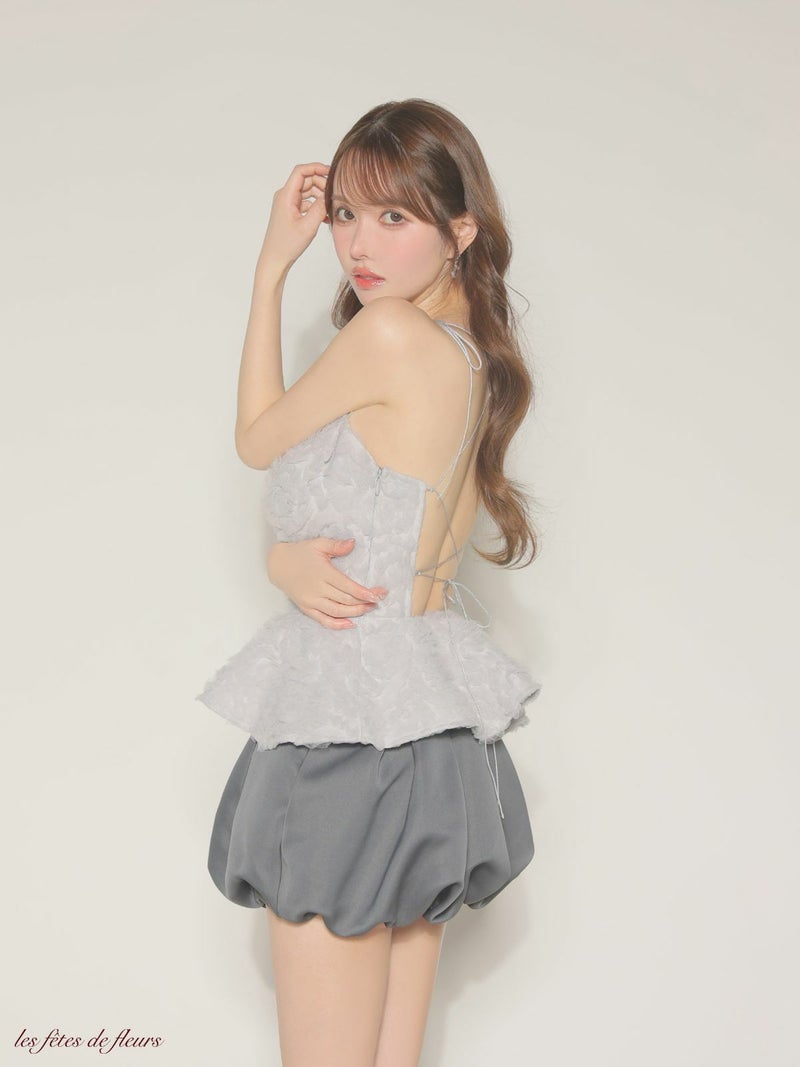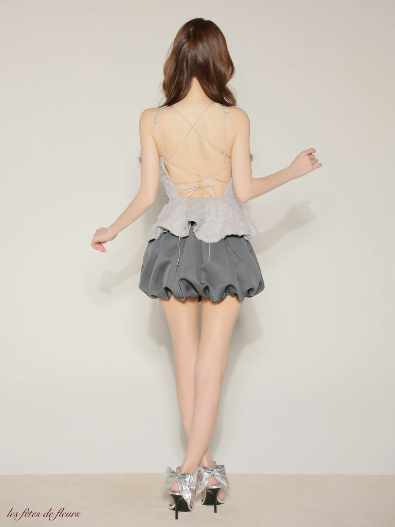 4. 予約商品【5月上旬入荷予定】[ROBEdeFLEURS/ローブドフルール] 高級 ブランド Aラインミニドレス セットアップ 背中魅せ ホルターネック フラワーモチーフ バルーンスカート