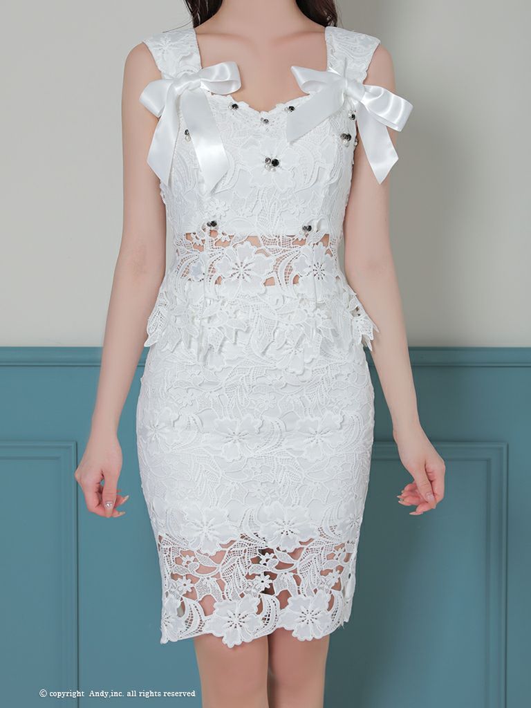 他の画像を見る フラワーレースのデザインが可愛すぎる☆ [ROBEdeFLEURS/ローブドフルール] 高級ノースリーブフラワーレースセットアップビジューフリルショルダージップタイトミニドレス ¥ 30,580 税込 お気に入りに追加
