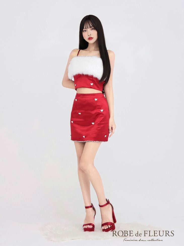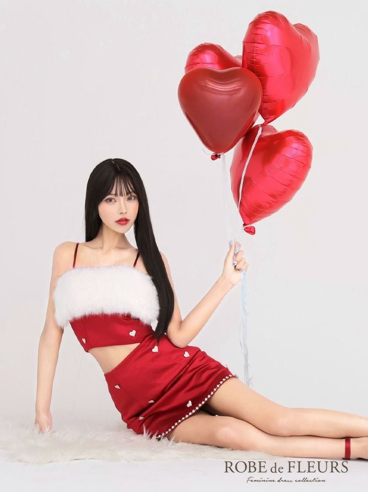 他の画像を見る 女の子の可愛さ溢れるセットアップ☆ [ROBEdeFLEURS/ローブドフルール] 高級2wayキャミソールセットアップハートビジューファー付きサテンタイトミニドレス ¥ 31,680 税込 お気に入りに追加