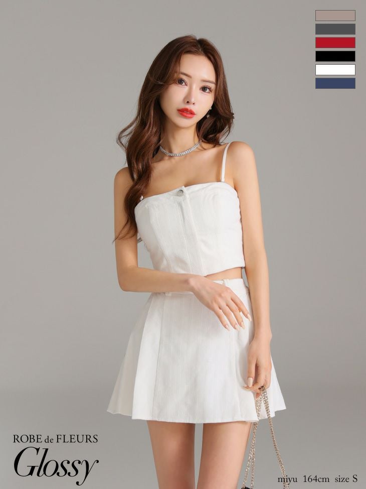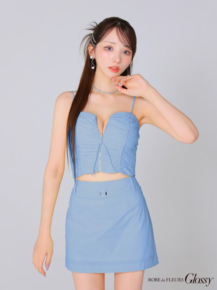 他の画像を見る 程良い肌魅せで魅了する☆ [ROBEdeFLEURSGlossy/ローブドフルールグロッシー] 高級シャーリングキャミソールセットアップジップウエストベルトタイトミニドレス ¥ 26,180 税込 お気に入りに追加