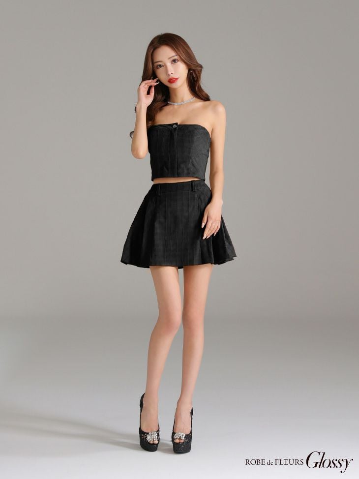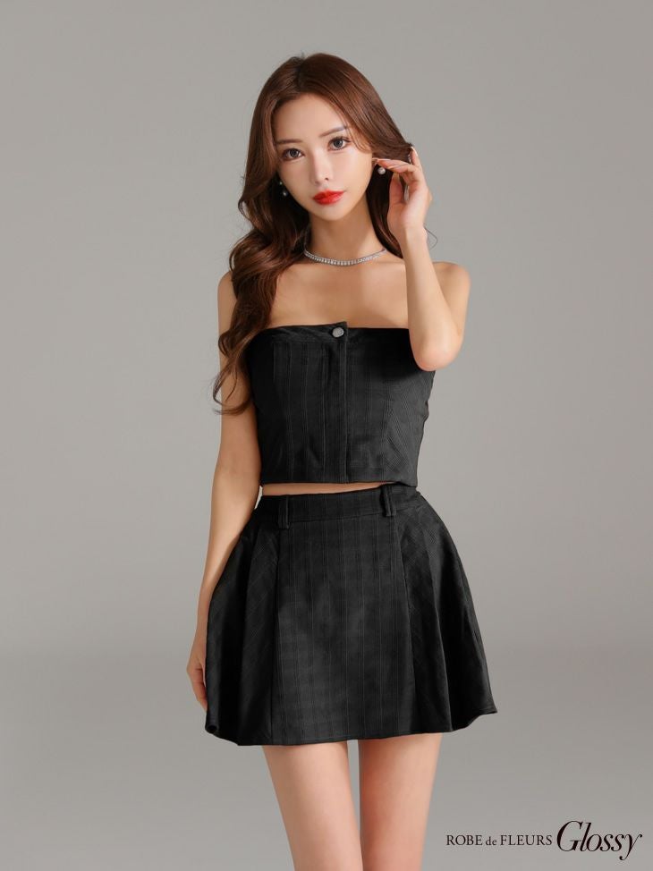 他の画像を見る ベアデザインでスッキリ肌見せ☆ [ROBEdeFLEURSGlossy/ローブドフルールグロッシー] 高級ベアデザインチェック柄セットアッププリーツフレアミニドレス ¥ 27,280 税込 お気に入りに追加