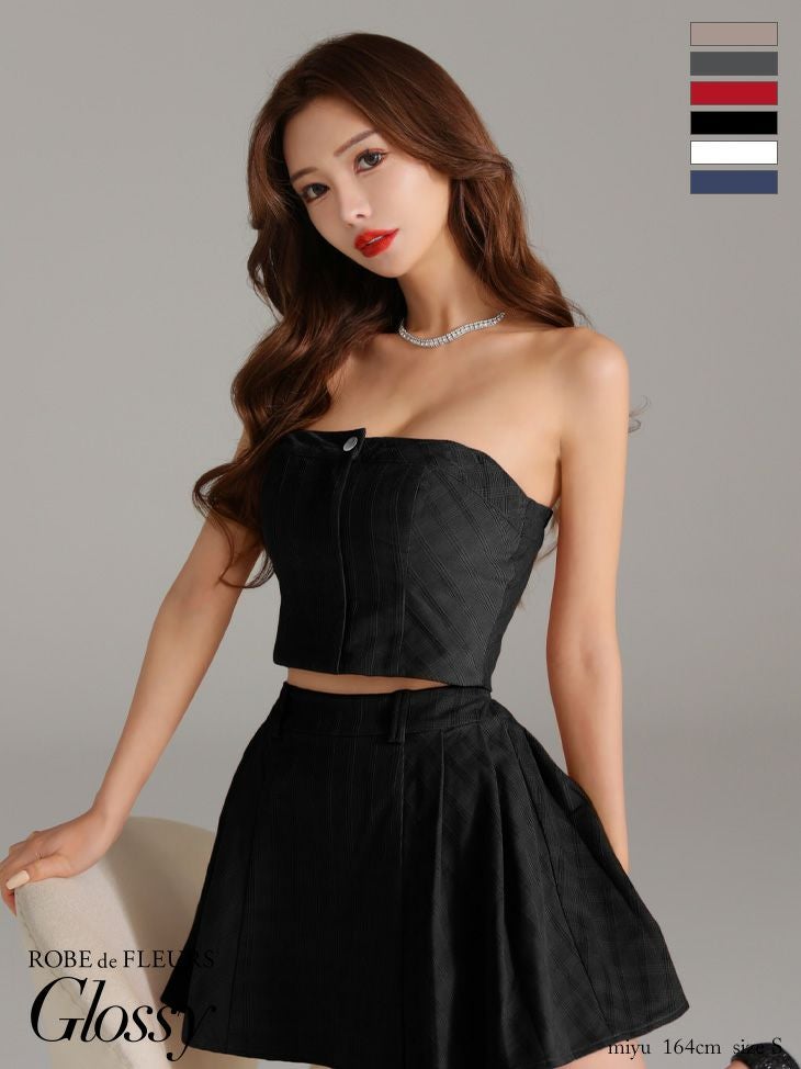 他の画像を見る シンプルでキュートなデザイン☆ [ROBEdeFLEURSGlossy/ローブドフルールグロッシー] 高級 バストカット ノースリーブ セットアップ ウエストベルト ワンカラー 谷間魅せ タイトミニドレス ¥ 26,180 税込 お気に入りに追加