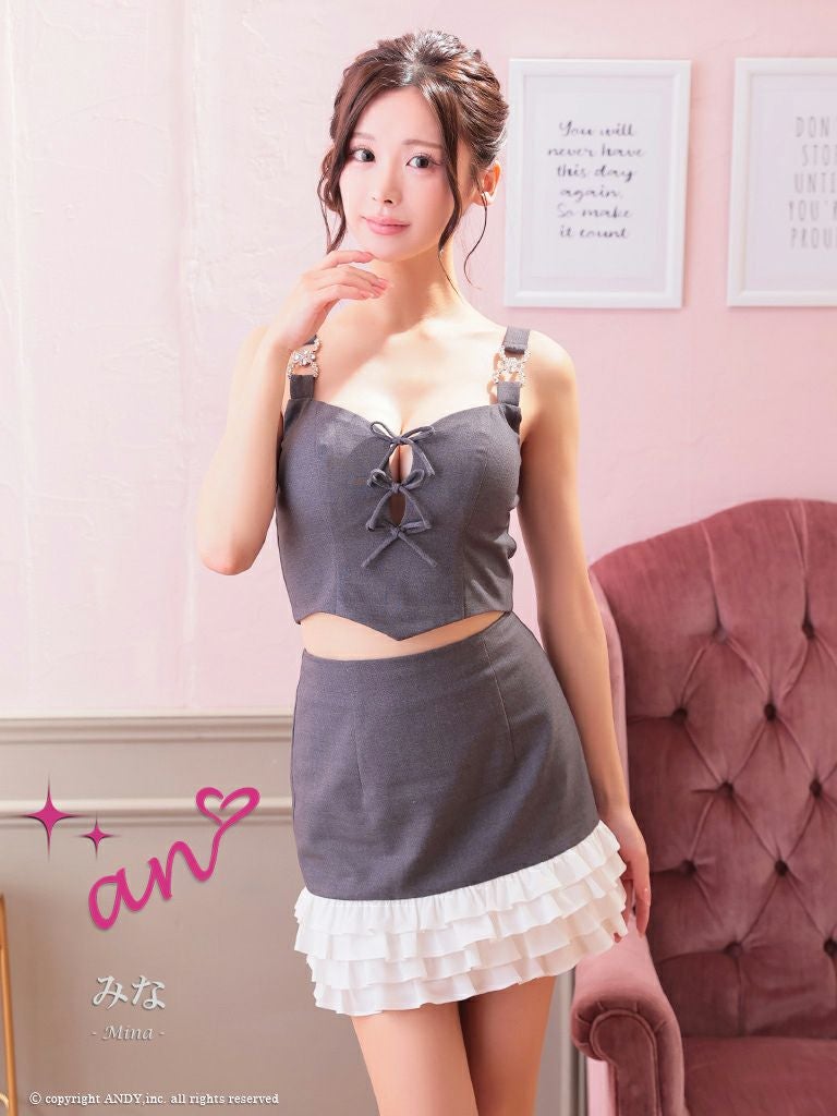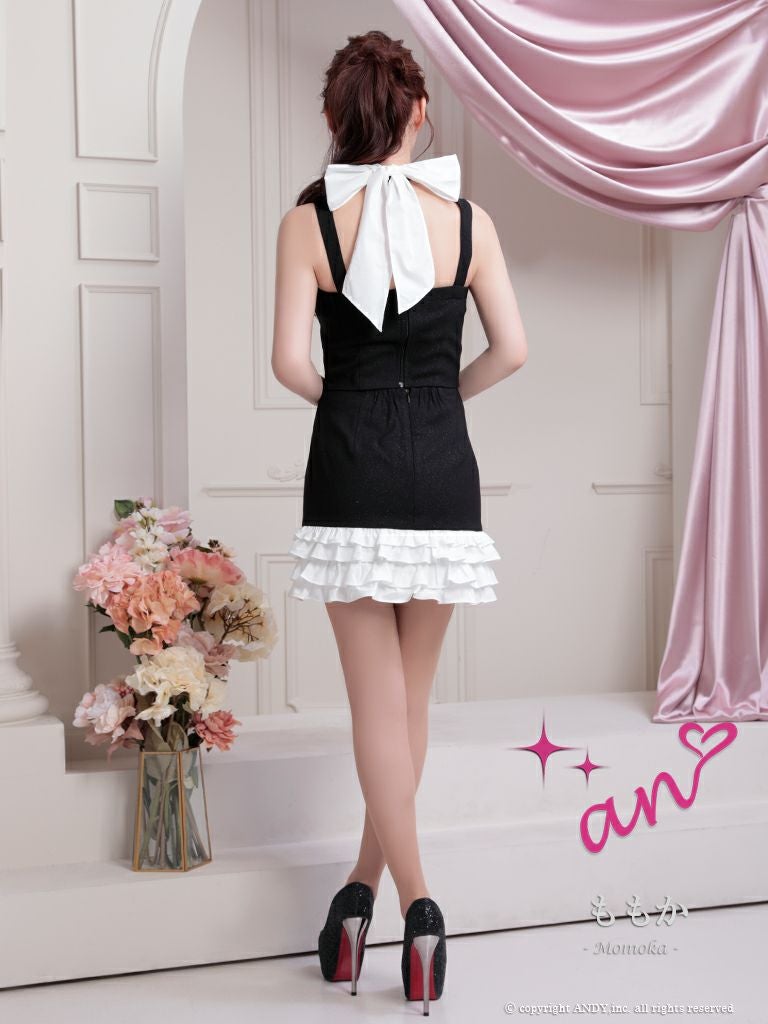 他の画像を見る 裾フリルで可愛さUP☆ [an/アン] 高級 ノースリーブ セットアップ 裾フリル ネックリボン ビジュー バストカット 谷間魅せ タイトミニドレス ¥ 27,500 税込 お気に入りに追加