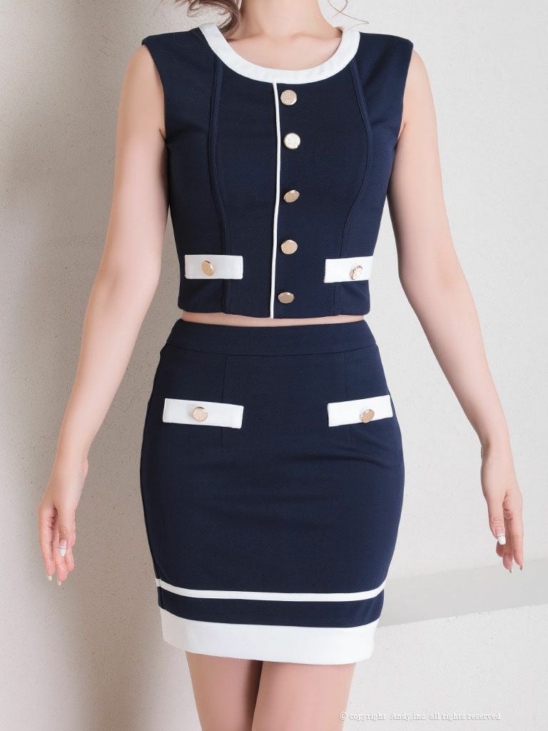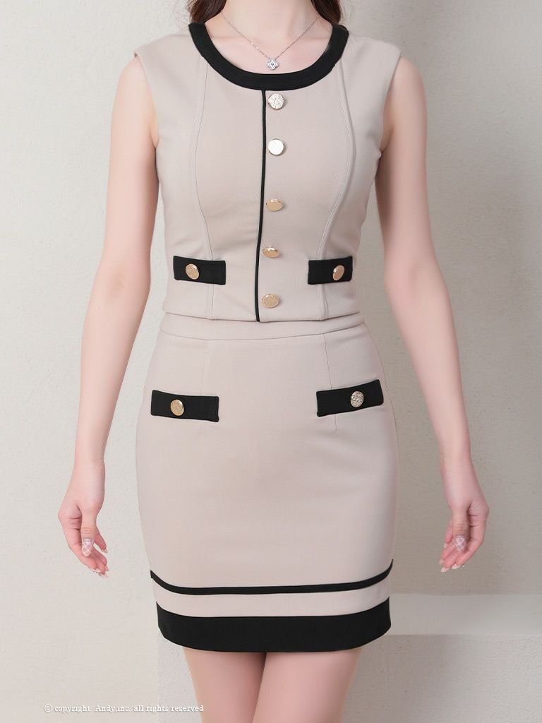 他の画像を見る シンプルでスタイリッシュなミニドレス☆ [AndyGLAMOROUS/アンディグラマラス] 高級ノースリーブセットアップボタンバイカラータイトミニドレス ¥ 26,400 税込 お気に入りに追加