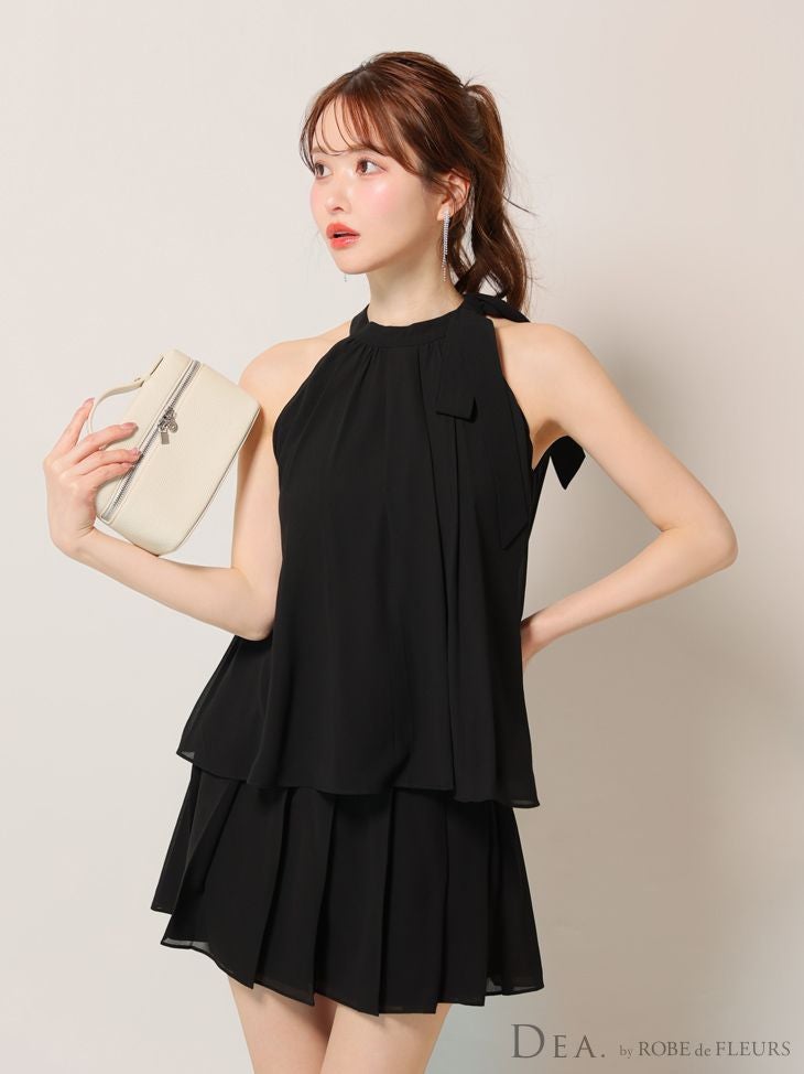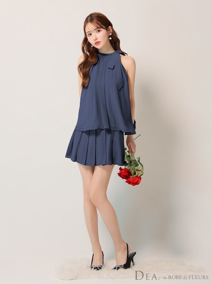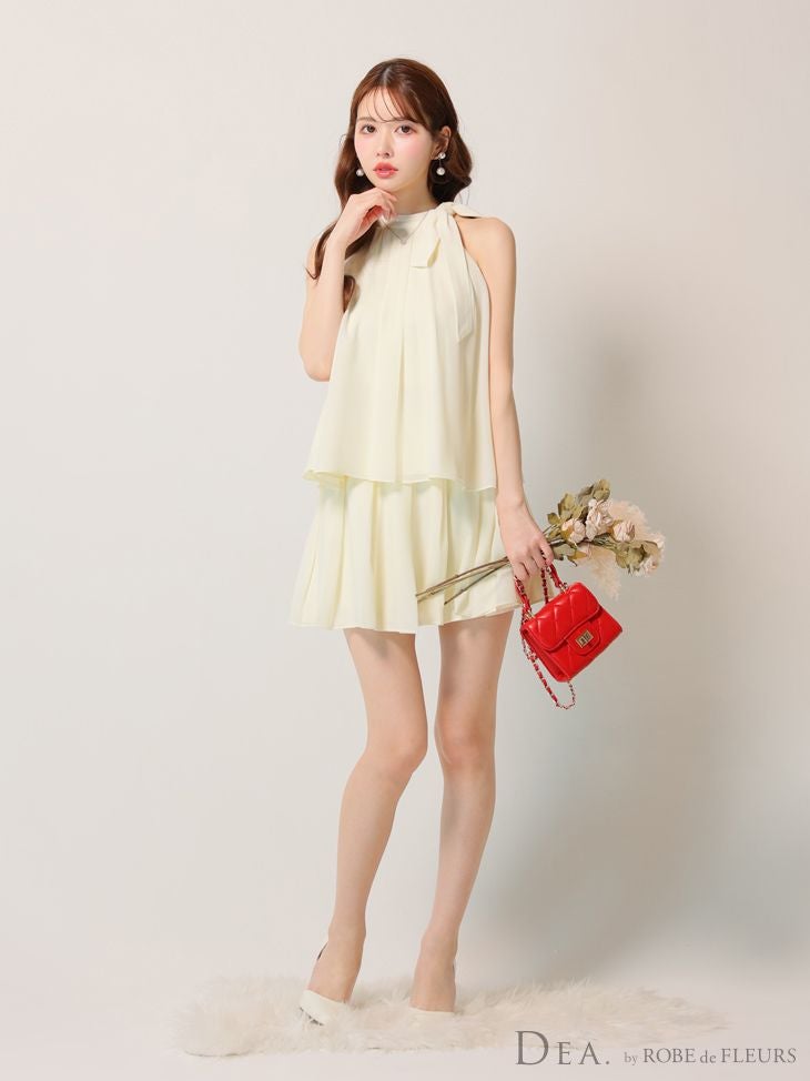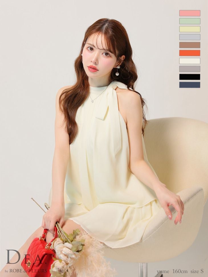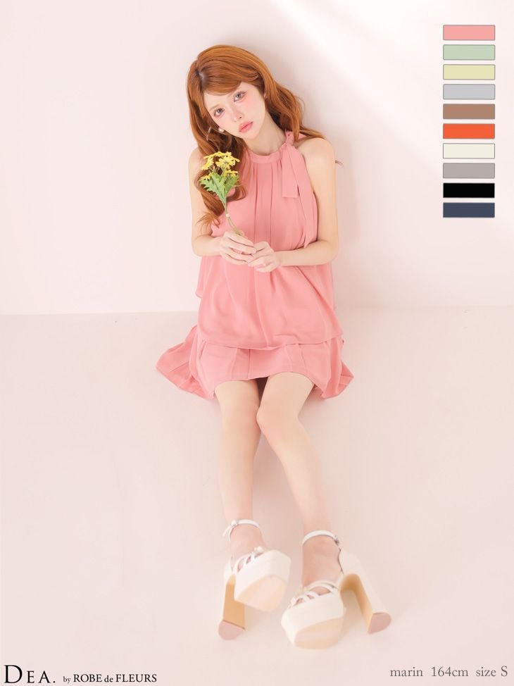 他の画像を見る シンプルなデザインで魅力的に☆ [DEA.byROBEdeFLEURS/ディアバイローブドフルール] 高級 ブランド Aラインミニドレス セットアップ ノースリーブ シフォン 胸元カバー シンプル ¥ 29,480 税込 お気に入りに追加
