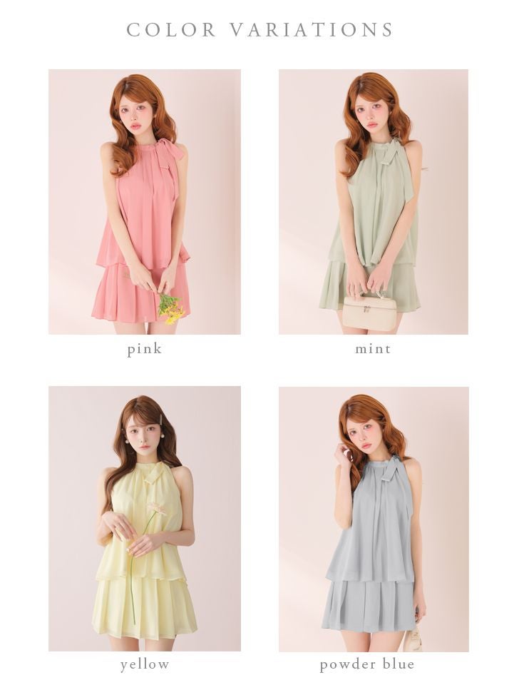 他の画像を見る パステルカラーで可愛さUP☆ 予約商品【5月中旬入荷予定】[ROBEdeFLEURS/ローブドフルール] 高級ホルターネックアシンメトリーリボンジップセットアップビジューフリルフレアミニドレス ¥ 28,380 税込 お気に入りに追加