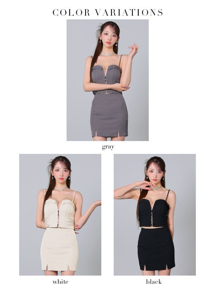 他の画像を見る ジップ調整で谷間を強調☆ [ROBEdeFLEURS/ローブドフルール] 高級2wayキャミソールセットアップジップハートビジューワンカラータイトミニドレス ¥ 29,480 税込 お気に入りに追加