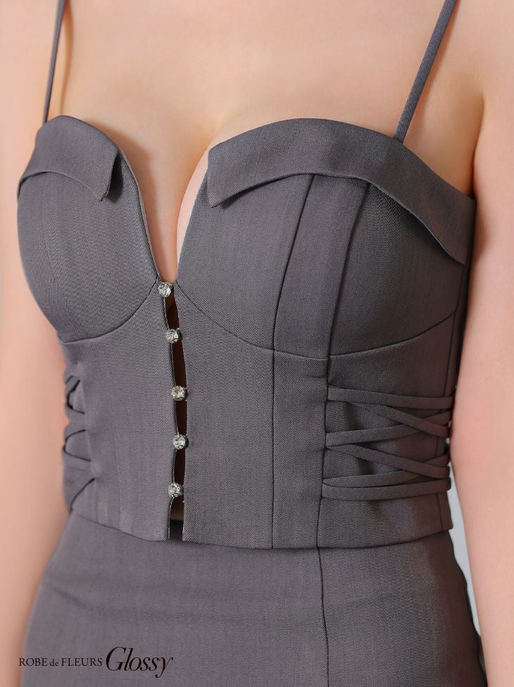 他の画像を見る サイドの編み上げがキュート☆ [ROBEdeFLEURSGlossy/ローブドフルールグロッシー] 高級 セットアップ キャミソール バストカット サイド編み上げ ウエストバックリボン ビジュー 谷間魅せ タイトミニドレス ¥ 29,480 税込 お気に入りに追加