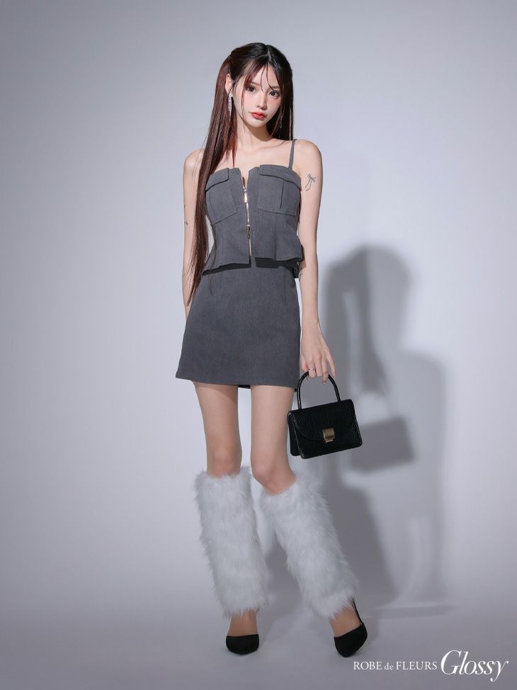 他の画像を見る トレンド感溢れるsexyデザイン★ [ROBEdeFLEURSGlossy/ローブドフルールグロッシー] 高級2wayキャミソールペプラムフロントジップセットアップタイトミニドレス ¥ 29,480 税込 お気に入りに追加