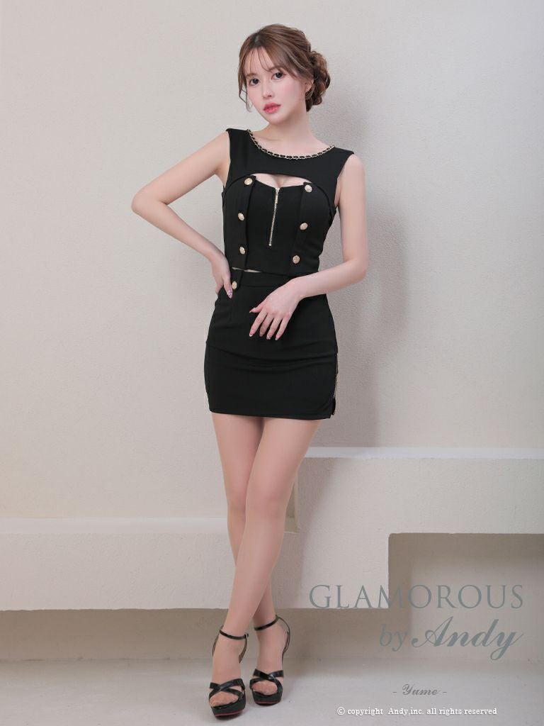 他の画像を見る sexyな肌魅せで大人の色気溢れる☆ [AndyGLAMOROUS/アンディグラマラス] 高級 ノースリーブ セットアップ ジップ ゴールドチェーンボタン バストカット 谷間魅せ タイトミニドレス ¥ 25,300 税込 お気に入りに追加