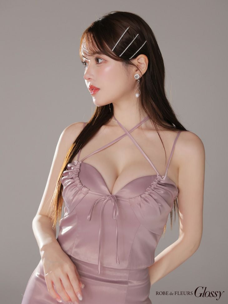 他の画像を見る サテンの質感で高級感溢れる☆ [ROBEdeFLEURSGlossy/ローブドフルールグロッシー] 高級 キャミソール セットアップ ネックリボン サテン バストカット 谷間魅せ タイトミニドレス ¥ 28,380 税込 お気に入りに追加