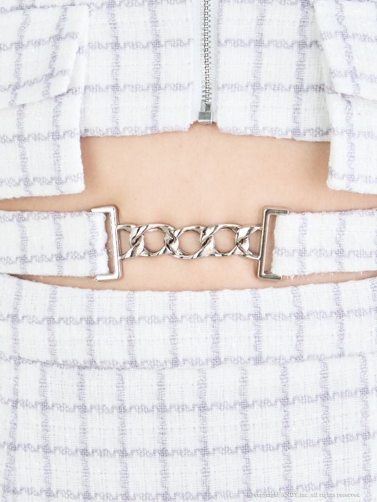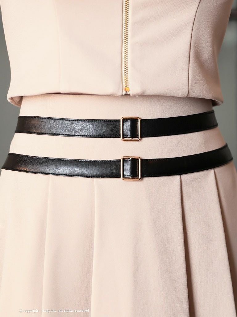 他の画像を見る ウエストからチラ見えする素肌がsexy☆ [an/アン] 高級ノースリーブ ジップ デコルテチェーン プリーツ ボタン セットアップ フレアミニドレス ¥ 29,700 税込 お気に入りに追加