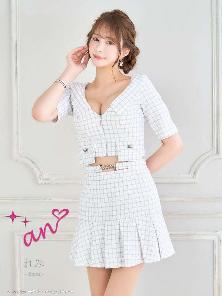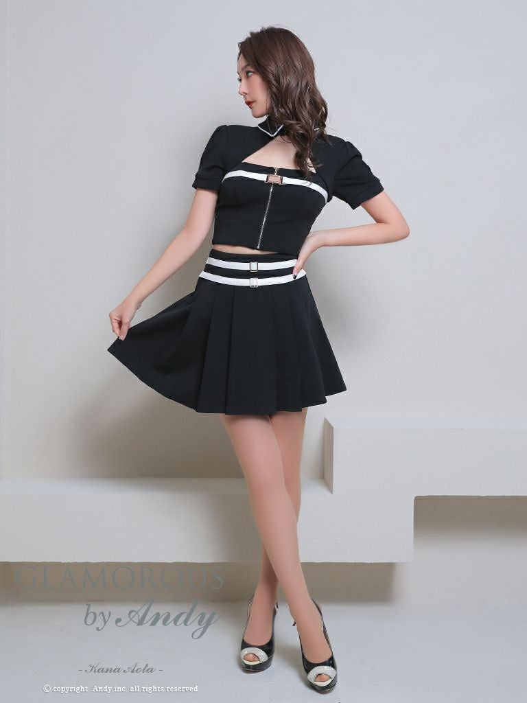他の画像を見る ウエストからチラ見えする素肌がsexy☆ [AndyGLAMOROUS/アンディグラマラス] 高級襟付き バストジップ 半袖 セットアップ プリーツ フレアミニドレス ¥ 28,600 税込 お気に入りに追加
