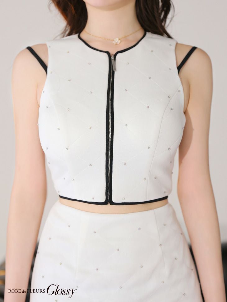 他の画像を見る セクシーな肌見せセットアップ♪ SUPER SALE [ROBEdeFLEURSGlossy/ローブドフルールグロッシー] 高級ノースリーブジップパイピングビジューセットアップタイトミニドレス ¥ 27,280 ¥ 21,824 税込 お気に入りに追加