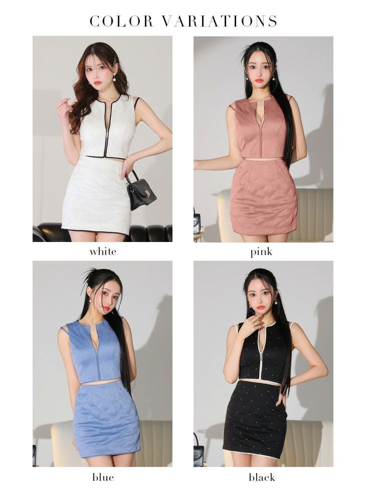 他の画像を見る ジップでsexyなセットアップ♪ SUPER SALE [ROBEdeFLEURSGlossy/ローブドフルールグロッシー] 高級ノースリーブジップパイピングビジューセットアップタイトミニドレス ¥ 27,280 ¥ 21,824 税込 お気に入りに追加
