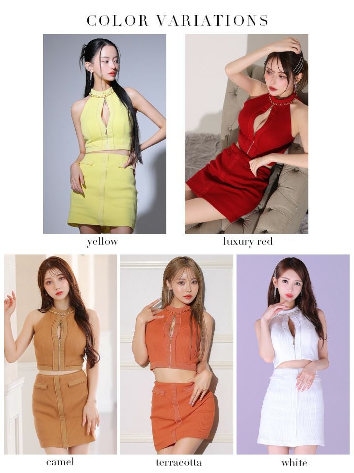 他の画像を見る バストジップで大人の色気溢れる★ [ROBEdeFLEURSGlossy/ローブドフルールグロッシー] 高級 ブランド タイトミニドレス セットアップ ホルターネック フロントジップ ワンカラー リブニット ¥ 26,180 税込 お気に入りに追加