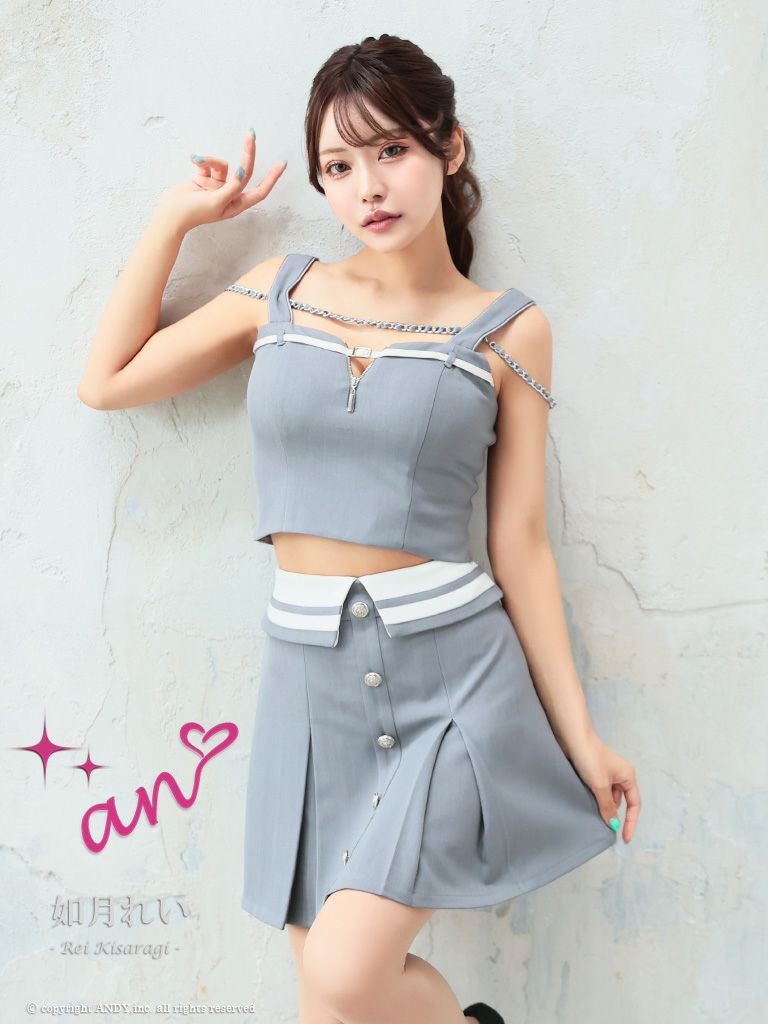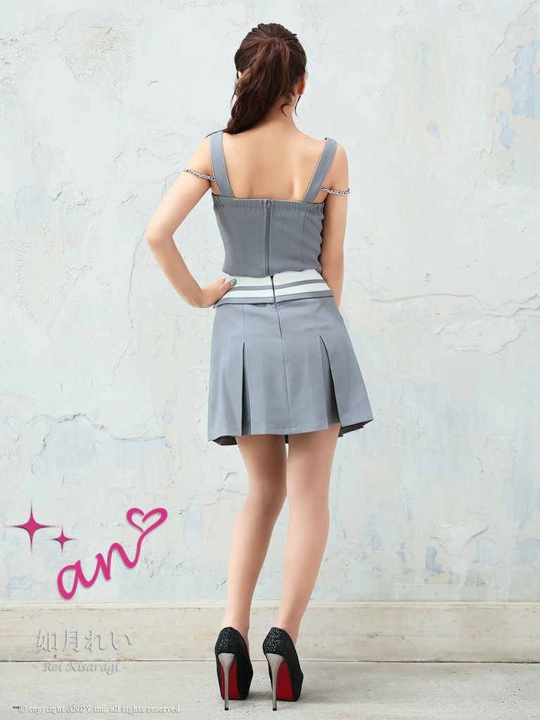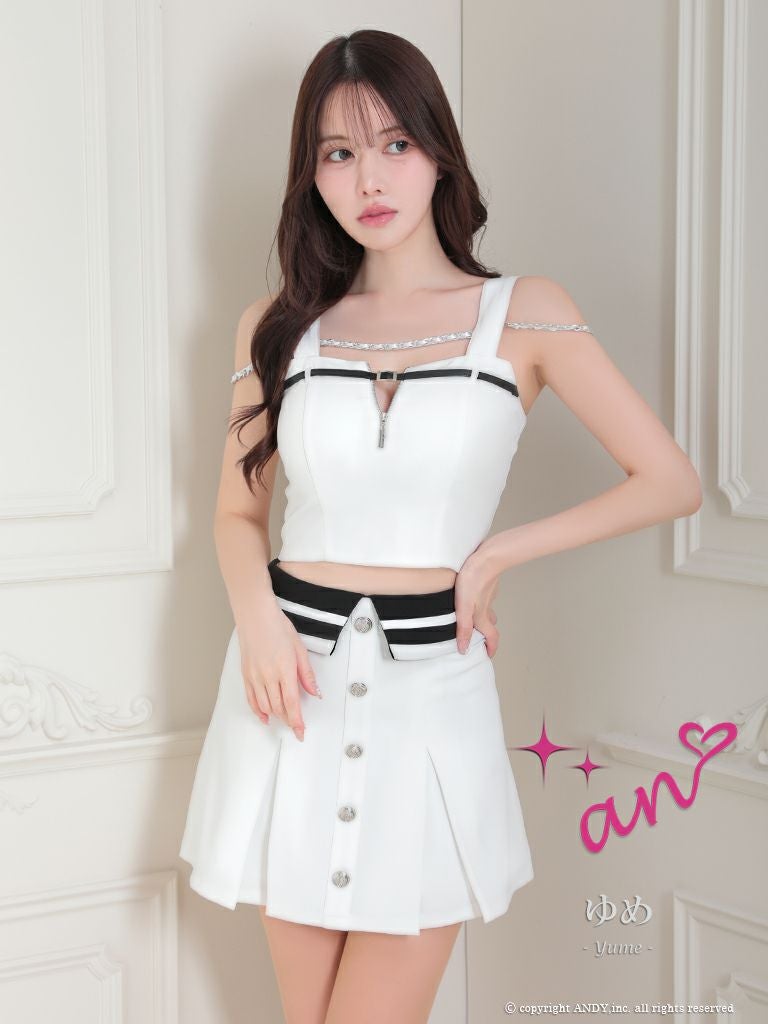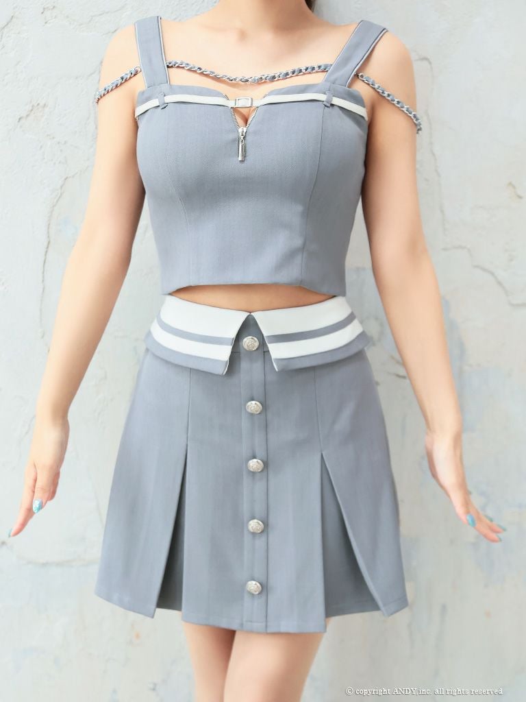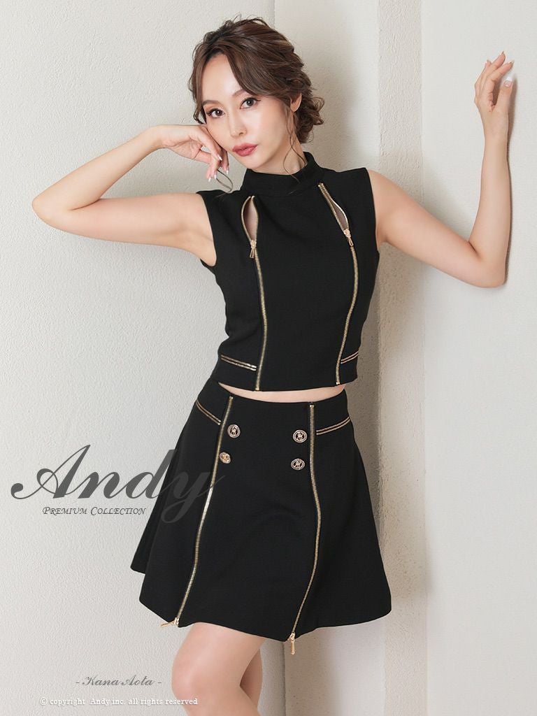 他の画像を見る ショート丈とミニスカートでスタイルUP効果抜群☆ [an/アン] 高級ノースリーブ ジップ デコルテチェーン プリーツ ボタン セットアップ フレアミニドレス ¥ 29,700 税込 お気に入りに追加
