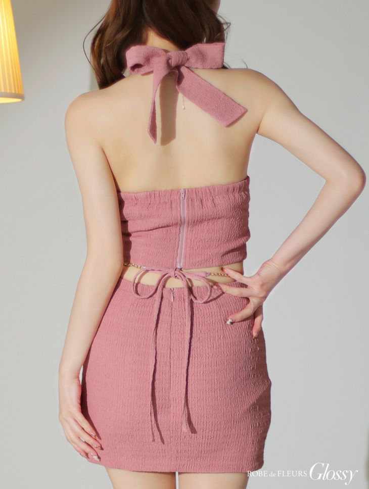 他の画像を見る 大胆な肌魅せで視線をキャッチ☆ [ROBEdeFLEURSGlossy/ローブドフルールグロッシー] 高級ホルターネックワッフル生地ワンカラーセットアップジップデザインタイトミニドレス ¥ 26,180 税込 お気に入りに追加