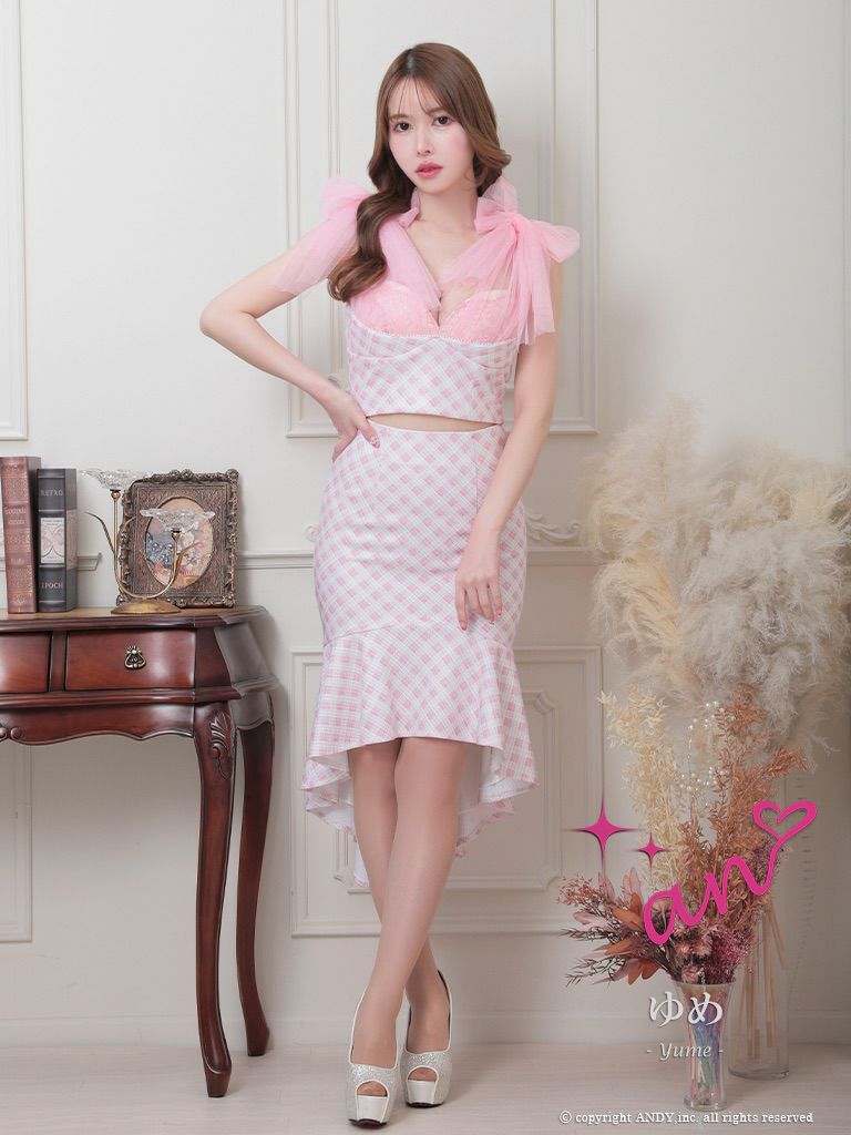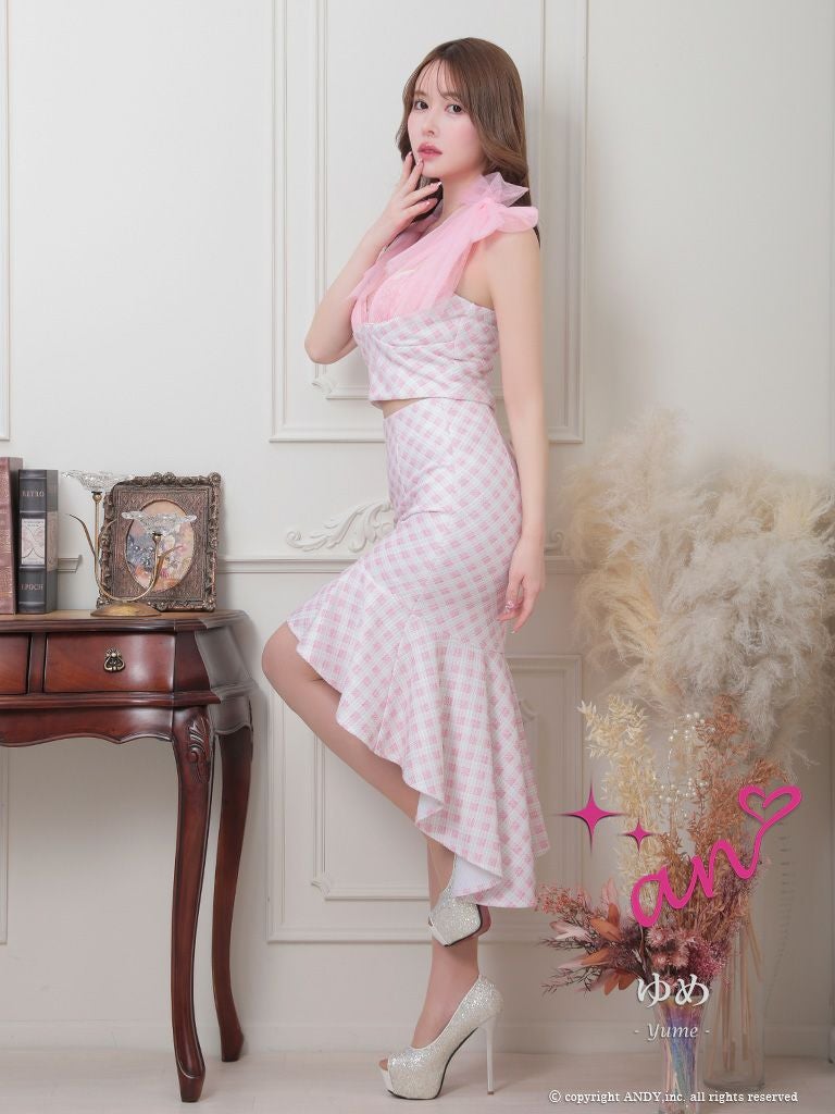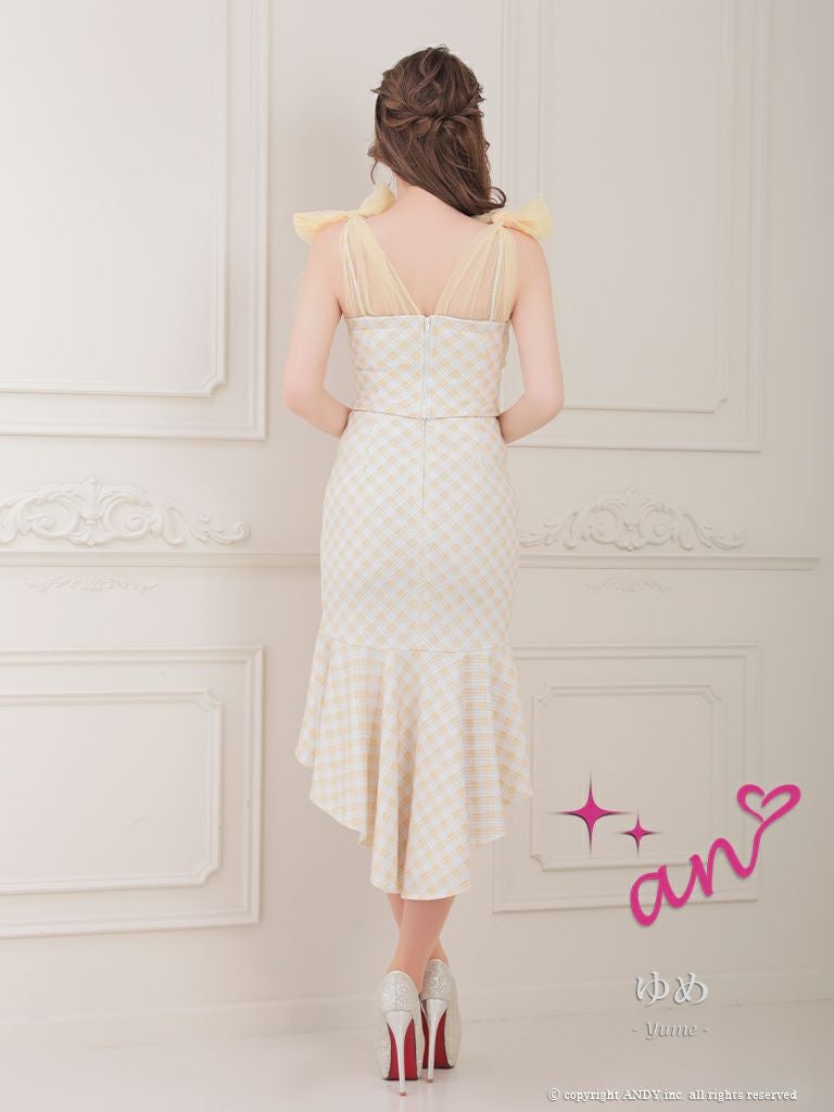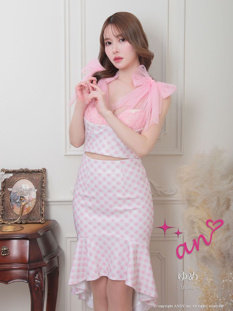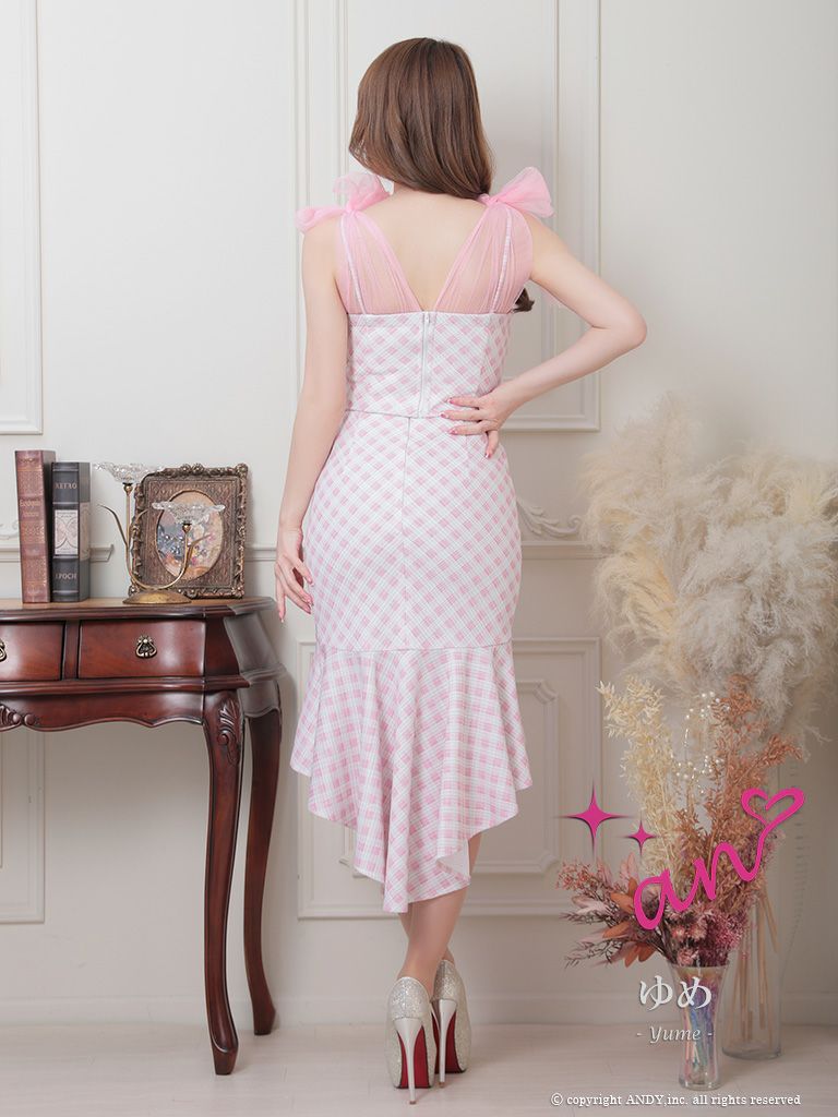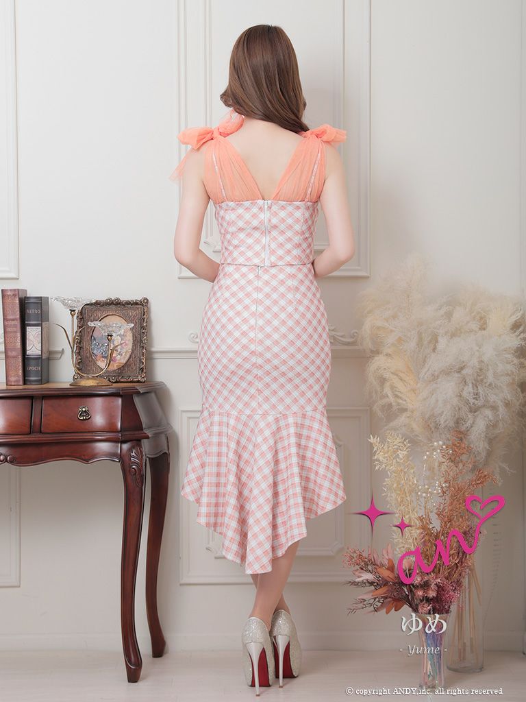 他の画像を見る パステルカラーの色合いがキュート☆ [an/アン] 高級チェック柄ノースリーブセットアップショルダーリボンマーメイドロングテールドレス ¥ 28,600 税込 在庫切れ お気に入りに追加