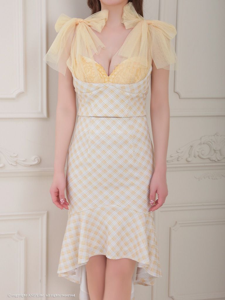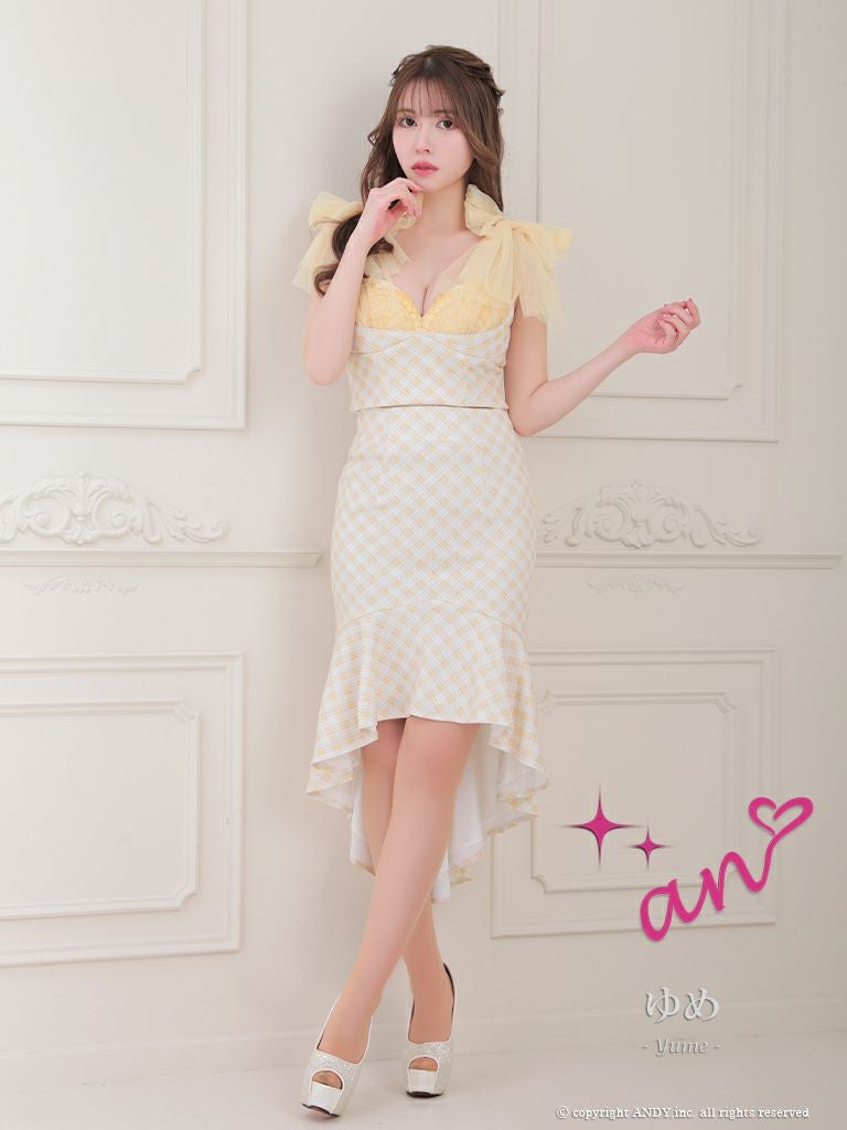 他の画像を見る ボディラインを強調するデザインが魅力的☆ [an/アン] 高級チェック柄ノースリーブセットアップショルダーリボンマーメイドロングテールドレス ¥ 28,600 税込 在庫切れ お気に入りに追加