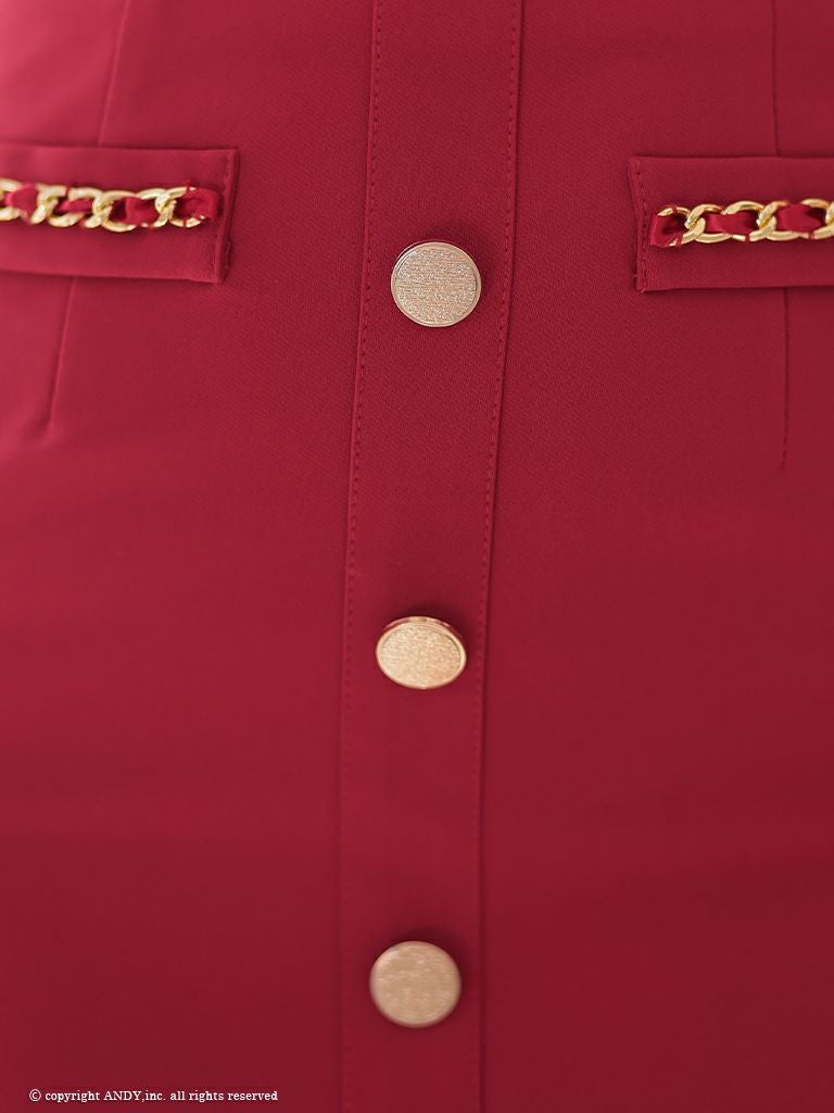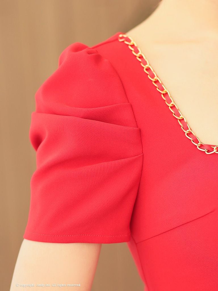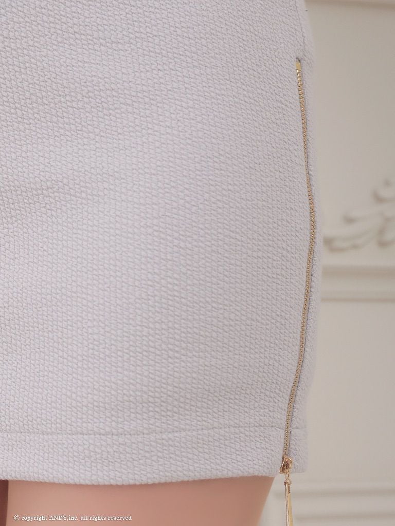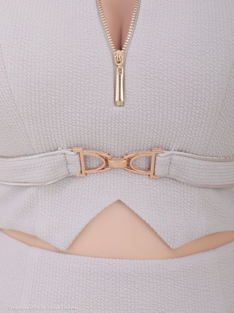 他の画像を見る チェーンの装飾で高級感UP☆ [Andy/アンディ] 高級半袖 スクエアネック セットアップ ジップ チェーン 裾フリル タイトミニドレス ¥ 28,600 税込 在庫切れ お気に入りに追加