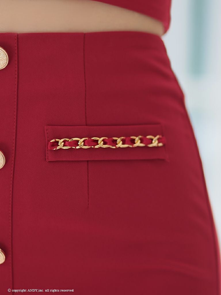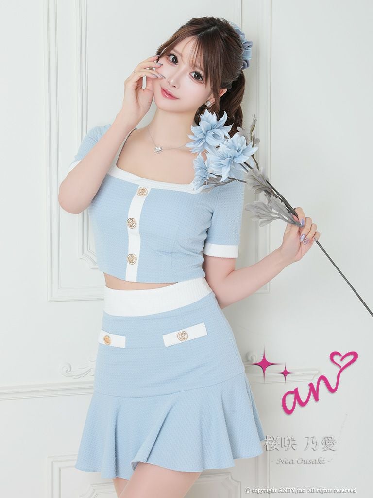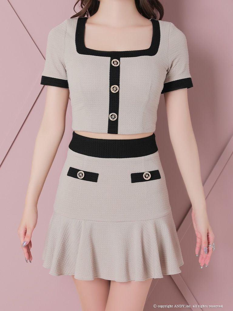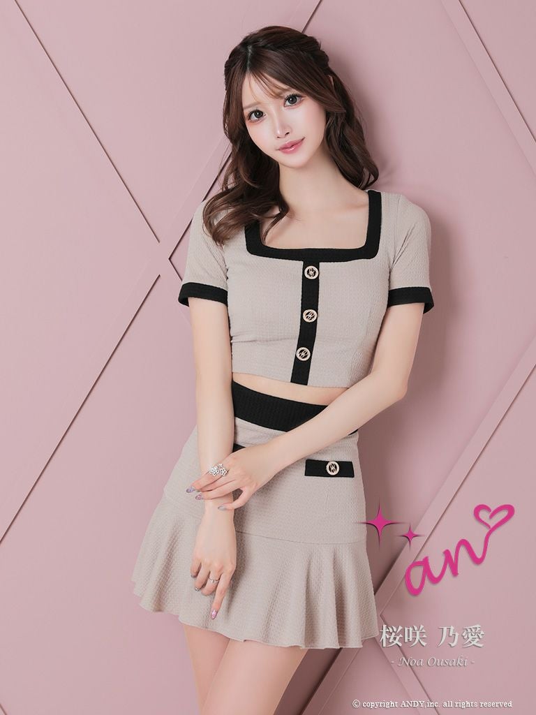他の画像を見る チェーンの装飾で高級感UP☆ [Andy/アンディ] 高級半袖 スクエアネック セットアップ ジップ チェーン 裾フリル タイトミニドレス ¥ 28,600 税込 在庫切れ お気に入りに追加