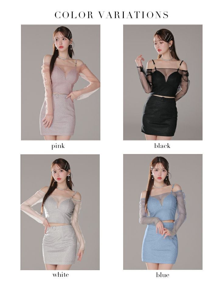 他の画像を見る 透け感のあるチュールがポイント☆ [ROBEdeFLEURSGlossy/ローブドフルールグロッシー] 高級 長袖 袖あり チュール 肩出し 二の腕カバー ラメニット ウエストベルト セットアップ バストシースルー 谷間魅せ タイトミニドレス ¥ 29,480 税込 在庫切れ お気に入りに追加