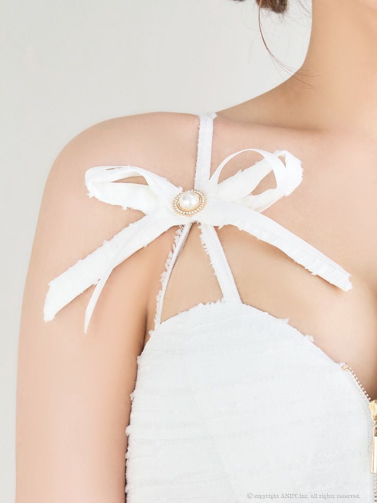 他の画像を見る 人気のツイードとリボンの組み合わせがガーリー☆ [an/アン] 高級 半袖 2way キャミソール セットアップ リボン バストカット パールボタン ツイード 谷間魅せ フレアミニドレス ¥ 29,700 税込 在庫切れ お気に入りに追加